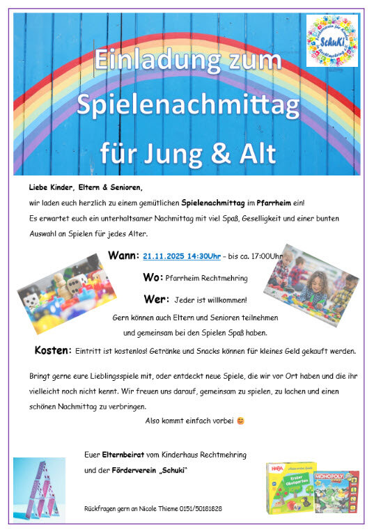 wir laden euch herzlich zu einem gemütlichen Spielenachmittag im Pfarrheim ein!